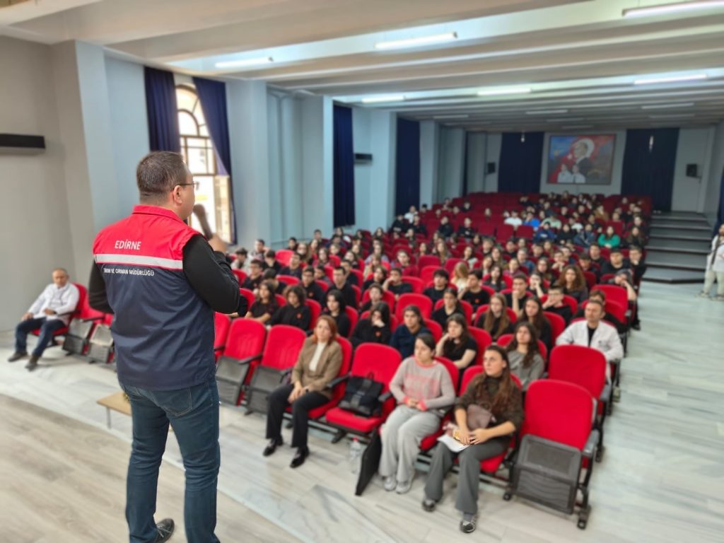Edirne İl Tarım ve Orman Müdürlüğü tarafından, 2025 faaliyet planı kapsamında Edirne Lisesi öğrencilerine gıda güvenliği, israfın önlenmesi ve sağlıklı beslenme konularında eğitim verildi.