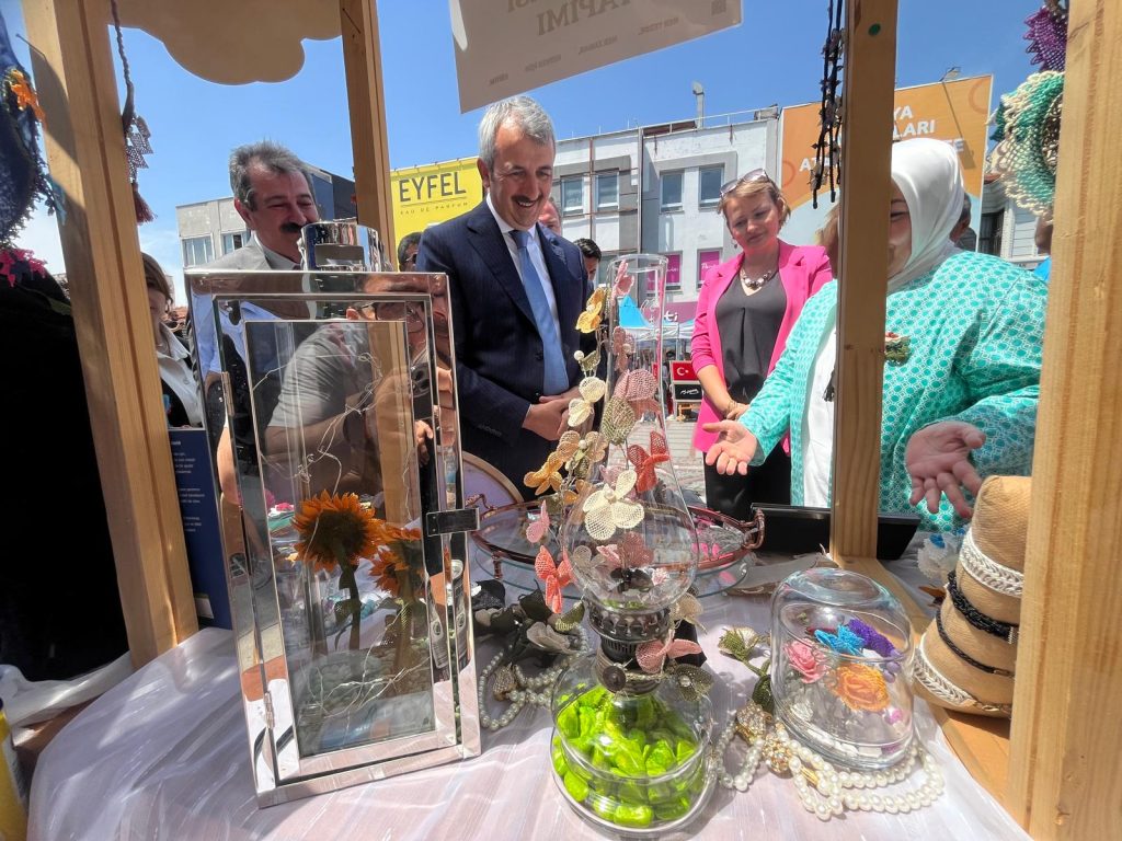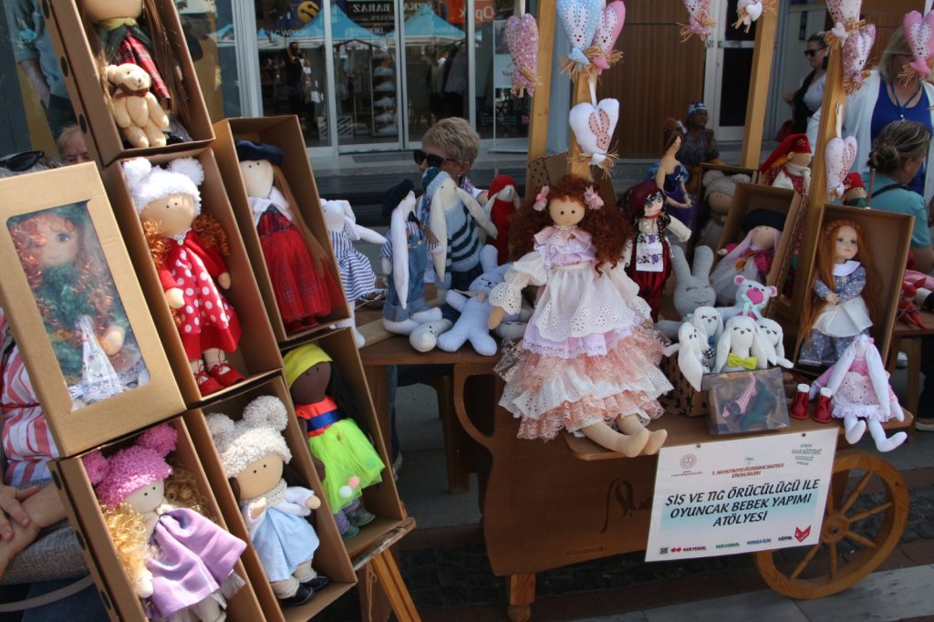 Edirne’de Hayat Boyu Öğrenme Haftası kutlama etkinlikleri kapsamında, Edirne Halk Eğitim Merkezi başta olmak üzere kentte faaliyet gösteren çeşitli kurumların açtığı kurslara katılan kursiyerlerin ürettikleri ürünler, Saraçlar Caddesi’nde sergilendi.