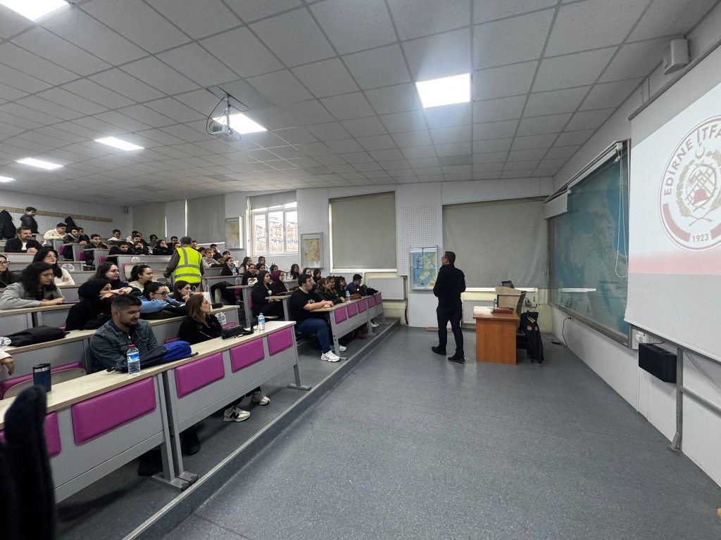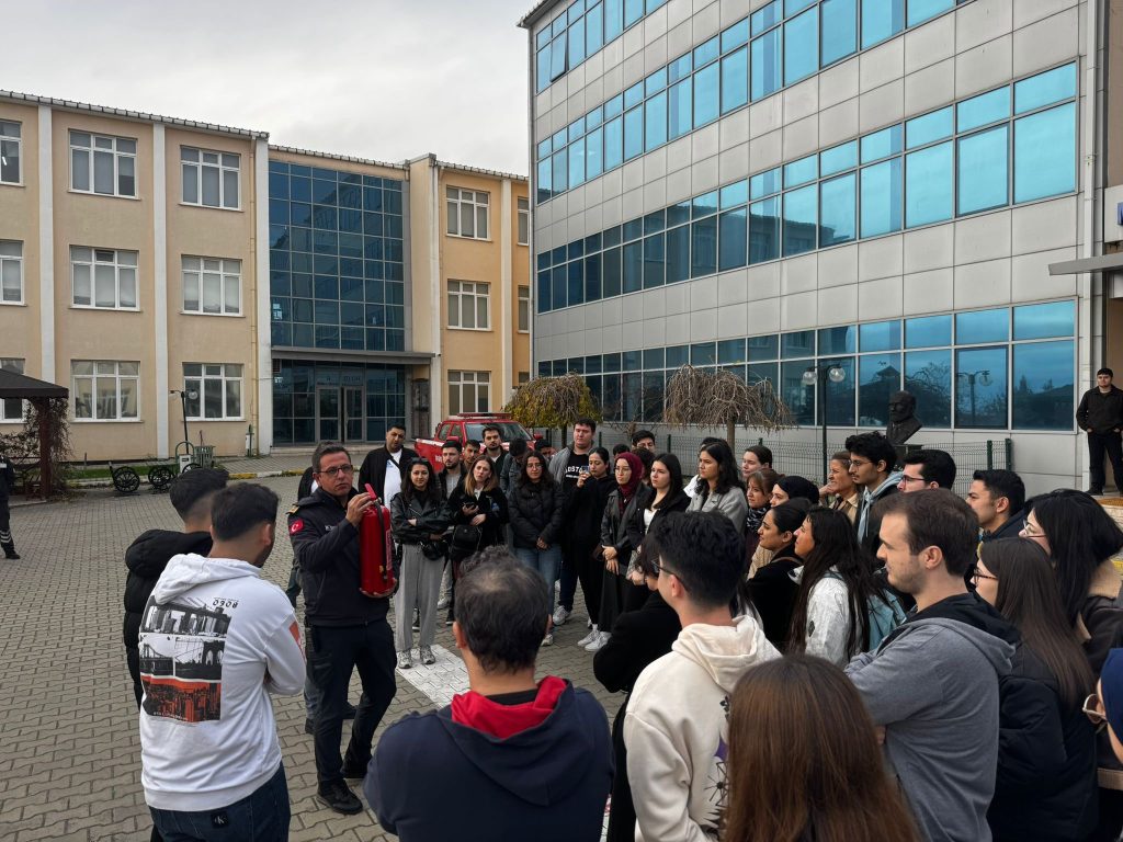 Trakya Üniversitesi Eğitim Fakültesi öğrencileri, Edirne Belediyesi İtfaiye Müdürlüğü’nün düzenlediği eğitimde yangınla mücadele tekniklerini, ekipman kullanımını ve acil durumlarda doğru davranış adımlarını hem teorik hem de uygulamalı olarak öğrenme fırsatı buldu.