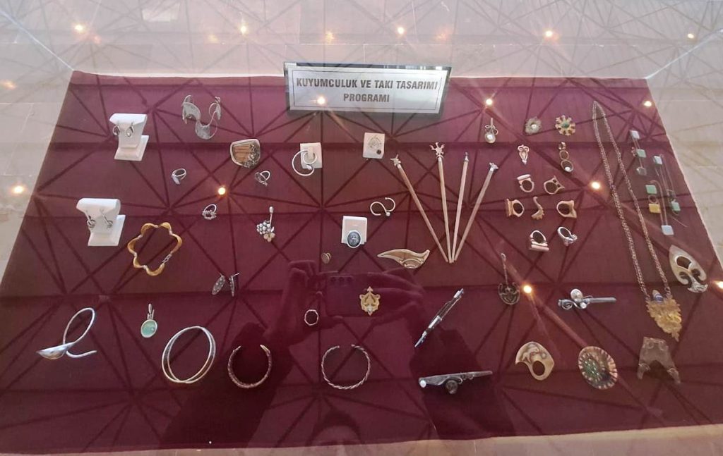 Sergi hakkında detaylı bilgi veren Öğr. Gör. Aybike Kınalı ise tasarımları anlattı. Kınalı; “’Kalp Çiçekleri’ koleksiyonu; içinde bulunduğu her zorluğu yüreğindeki sevgi ve şefkatle kolaylaştırarak ona çiçekler açtıran kadınları anlatıyor. 4 parçadan oluşan bu koleksiyon 4 kadının aynı zorluk ve baskıya maruz kaldıkları halde farklı tepkiler verip yaşam sevincini birbirinden güzel ve değişik çiçekler ile ifade etmelerinin takıda hayat bulmuş halidir. Bu çalışmada 925 ayar gümüş madeni klasik kuyumculuk teknikleri kullanılarak tasarlanmıştır, alternatif malzeme olarak deri tercih edilmiştir” dedi.