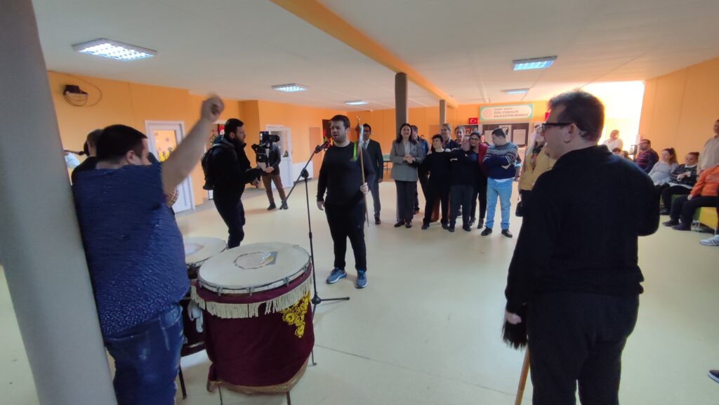 3 Aralık Dünya Engelliler Günü kapsamında özel gereksinimli bireylere kültür ve sanat alanlarında kurslar veren Edirne Özel Yürekler Halk Eğitim Merkezi’ni ziyaret eden Türkiye Beyazay Derneği Edirne Şubesi, özel gereksinimli kursiyerler ile bir araya geldi. Programa, Türkiye Beyazay Derneği Edirne Şube Başkanı Gözde Emel Baytar, AK Parti Edirne İl Başkanı Belgin İba, dernek üyeleri, halk eğitim merkezi eğitimcileri ve özel gereksinimli kursiyerler katıldı. Etkinlikte, Özel Yürekler Halk Eğitim Merkezi’nin kursiyerleri tarafından hazırlanan mehter gösterisi büyük beğeni topladı.