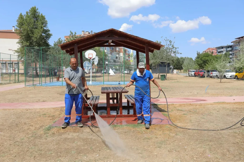 Ekipler; Barış Parkı, Çocuk Oyun ve Macera Parkı (Suni Gölet) ile Şehit Astsubay Ömer Halisdemir 15 Temmuz Cumhuriyet ve Demokrasi Şehitleri Parkı’nda detaylı bir temizlik çalışması yürüttü. Temizlik İşleri Müdürlüğü bünyesindeki 11 personel, 3 süpürge aracı ve 1 arazözle yapılan çalışmalarla dinlenme alanları, oyun grupları, sahalar ve yürüyüş yolları temizlendi.