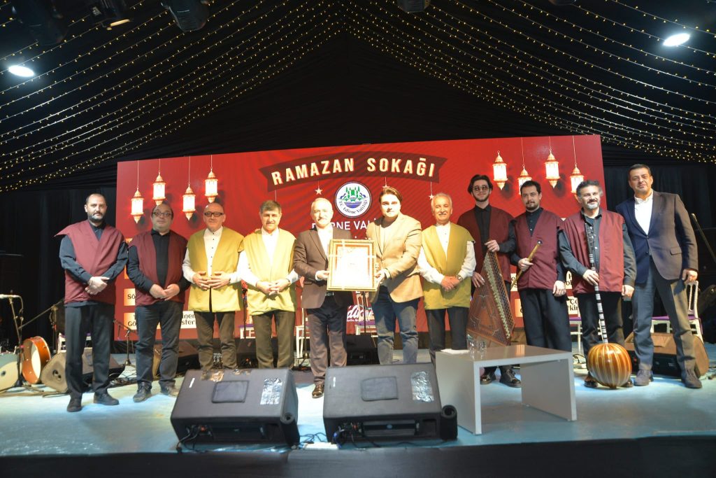 Edirne'de Selimiye Camii’nin gölgesinde kurulan Ramazan Sokağı’nda sahne alan Mehmet Kemiksiz ve Enderun Hafızlar Topluluğu, ilahiler ve tasavvuf musikisiyle Ramazan akşamına huzur kattı.