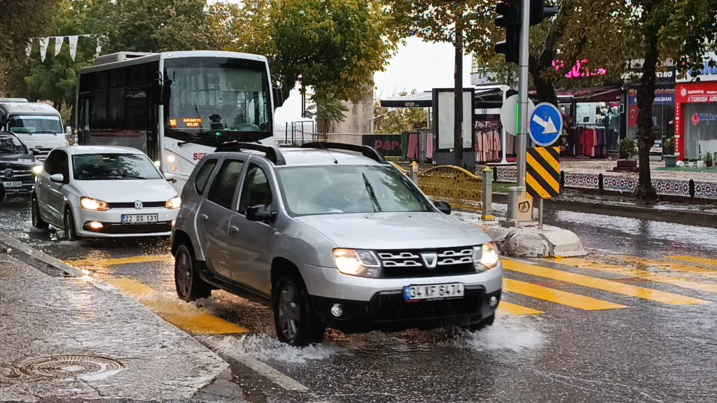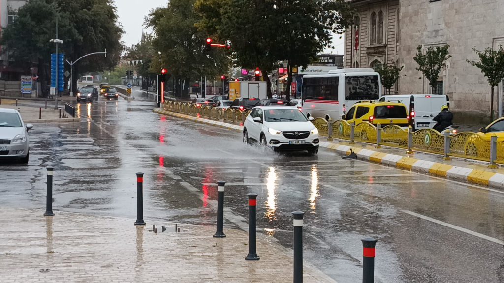 Meteoroloji’nin uyarısının ardından Edirne’de etkili olan yağış, gece boyunca devam etti. Cadde ve sokaklarda su birikintileri oluşurken, sürücüler zor anlar yaşadı.