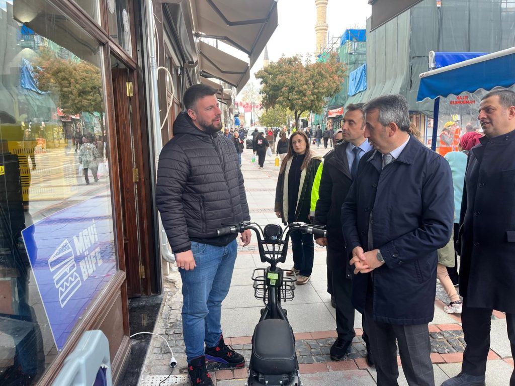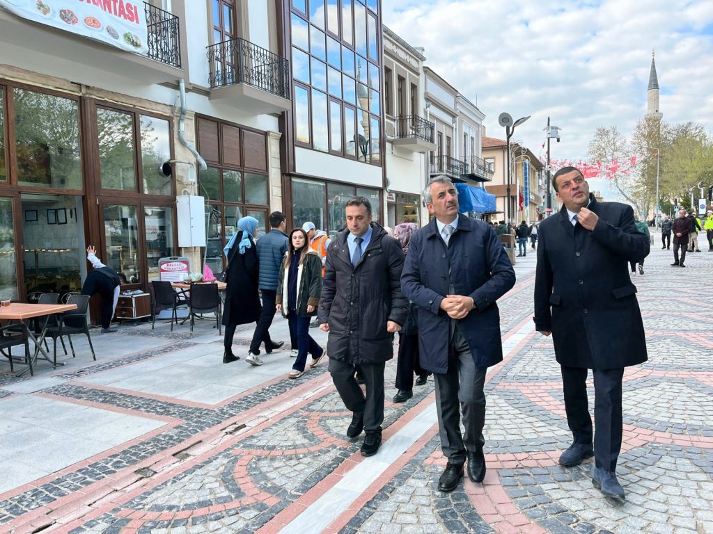 Edirne’nin trafiğe kapalı en büyük caddesi olan ve çoğu tescilli yapıdan oluşan Saraçlar Caddesi’nde, Ekim ayında başlayan sokak sağlıklaştırma çalışmalarını inceleyen Edirne Valisi Yunus Sezer, esnafla sohbet etti.
