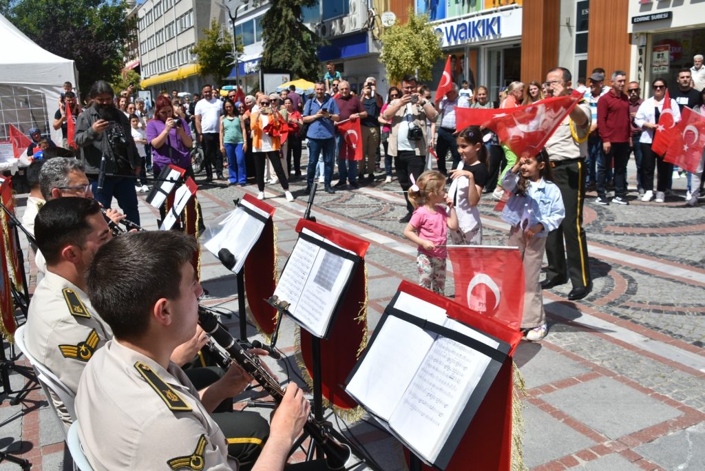 Edirne’de, kentin en işlek caddelerinden biri olan araç trafiğine kapalı Saraçlar Caddesi’nde 19 Mayıs Atatürk’ü Anma, Gençlik ve Spor Bayramı kutlama etkinlikleri kapsamında Çorlu 5’inci Kolordu Bölge Bando Komutanlığı tarafından konser verildi.