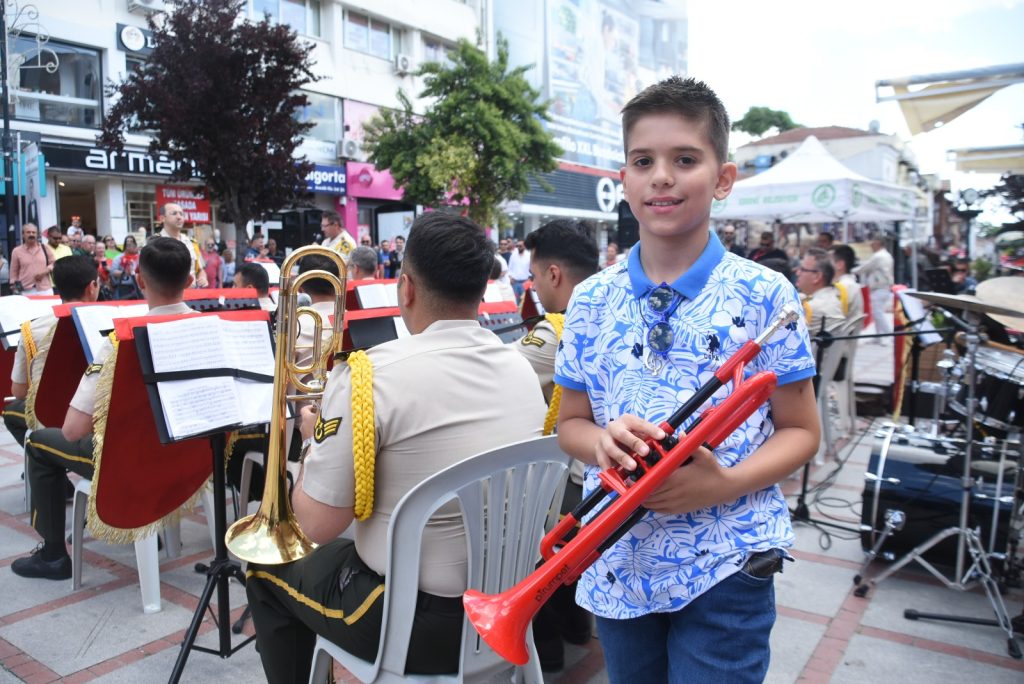 Edirne’de 19 Mayıs Atatürk’ü Anma, Gençlik ve Spor Bayramı kutlama etkinlikleri kapsamında Saraçlar Caddesi’nde Çorlu 5’inci Kolordu Bölge Bando Komutanlığı tarafından konser verildi. Ellerine Türk bayrağı alan çok sayıda vatandaş tarafından ilgiyle takip edilen konser, büyük beğeni topladı. Konseri dinlemeye gelen 10 yaşındaki Doruk Sürer, hayalinin askeri bandoda görev yapmak olduğunu belirterek, trompetiyle bandoya eşlik edip, hayallerine giden ilk adımı attı.