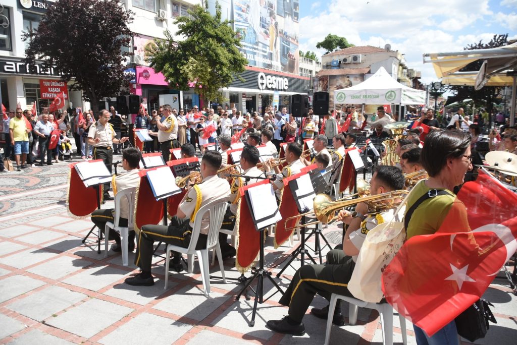 Bando takımının vatandaşları selamlaması ile başlayan konserde İzmir Marşı, Memleketim, 100'üncü Yıl Marşı, Kara Sevda, Uzun İnce Bir Yoldayım gibi eserler seslendirildi. Konseri takip eden kimi vatandaş ellerinde Türk bayraklarıyla eserlere eşlik etti, kimi vatandaş ise cep telefonlarının kameralarıyla anı ölümsüzleştirdi. Edirne Valisi Yunus Sezer ve Garnizon Komutanı Tuğgeneral Berat Acar da konseri takip etti.