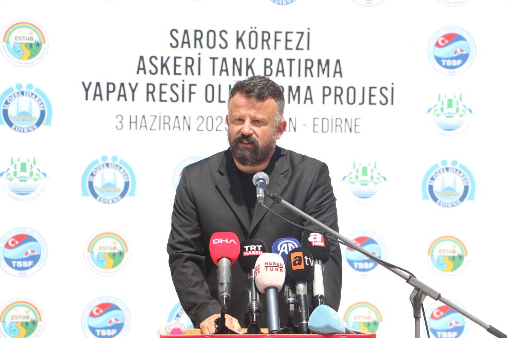 Türkiye Sualtı Sporları Federasyonu Başkanı Kadir Sağlam ise, projeyle su altı yaşamına yeni bir alan kazandırıldığını belirtti. Sağlam; "9 metre uzunluğunda ve 45 ton ağırlığındaki tankın batırılmasıyla yeni bir yapay resifin temelini atıyoruz. 10 metre derinlikte yeterli ışık ve net görüş açısıyla yerli ve yabancı dalış turizminin renk katacak yapay resifimizin bir gün içinde dalışa uygun hale geleceğini düşünüyoruz. Su altı kültürel mirasımızın ve canlı yaşamının korunmasında ön saflarda faaliyet gösteren bu konulardaki dalıcı eğitimleri Almanya, Portekiz gibi ülkeler başta olmak üzere, dünyanın örnek aldığı federasyonumuz adına bu projeyi hayata geçiren Edirne Valiliğimize, ESTAB'a, belediyemize, kolordu ve tugay komutanlıklarımıza, tüm resmi kurum ve kişilere teşekkür ederim. Yeni bir su altı yaşam alanına hep birlikte merhaba diyeceğiz. Onu hep birlikte koruyacak, yaşatacağız” ifadelerini kullandı.