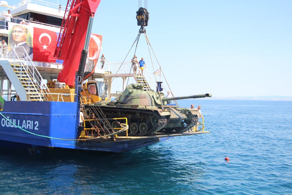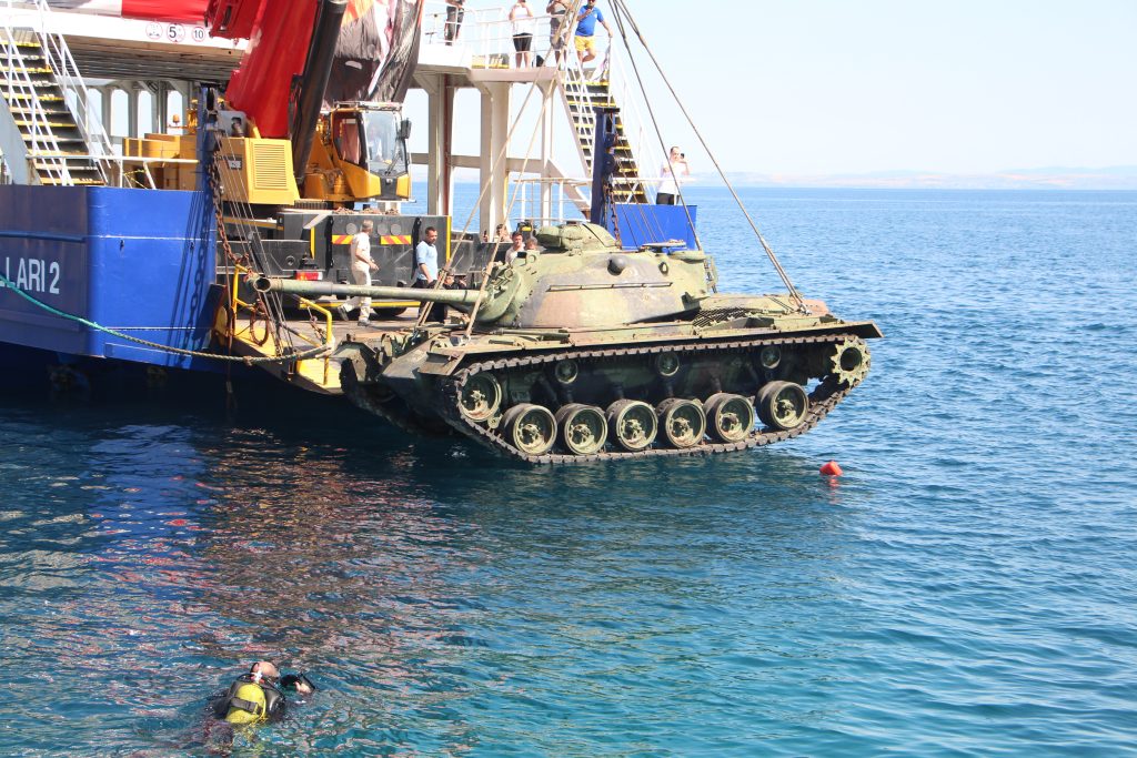 Edirne'nin Saros Körfezi'nde M48A5T1 model tank su altına indirildi. Türkiye’nin en sığ batığı unvanını alan tank, hem dalış turizmini canlandıracak hem de deniz ekosistemine katkı sağlayacak.