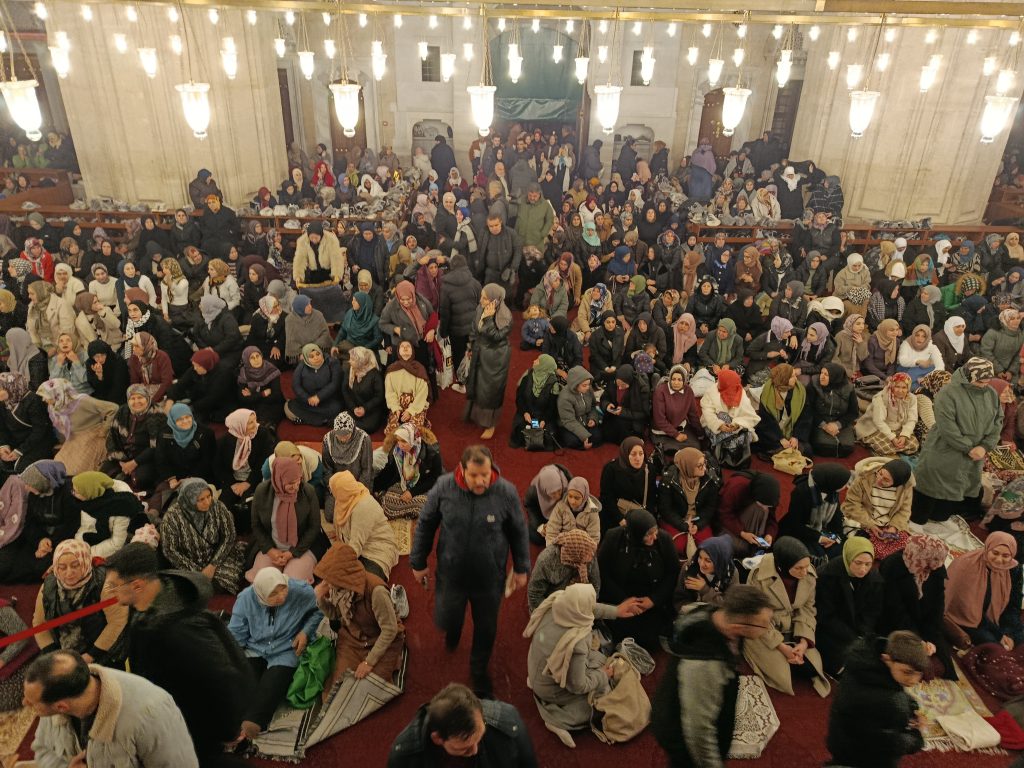 Teravih namazı için cami içi kısa sürede dolarken, cemaat avluya kadar taştı. Yatsı namazının ardından kılınan teravihte dualar edildi, eller semaya açıldı.