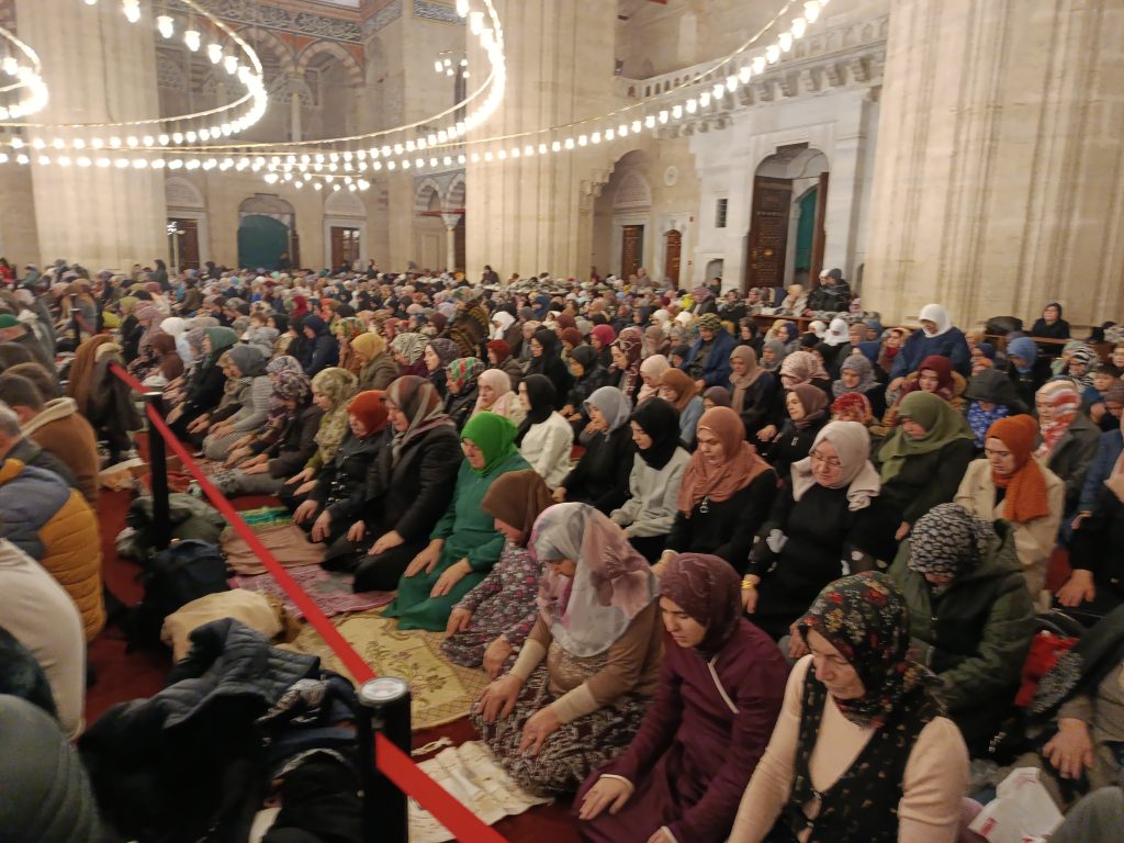 Edirne'de yaklaşık 4,5 yıl süren restorasyonun ardından yeniden ibadete açılan Selimiye Camii’nde Ramazan’ın ilk teravih namazında cemaat saf tutarak tarihi mabedi hınca hınç doldurdu.