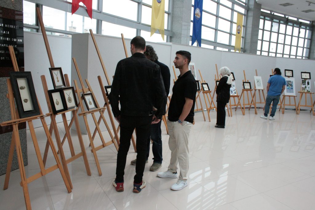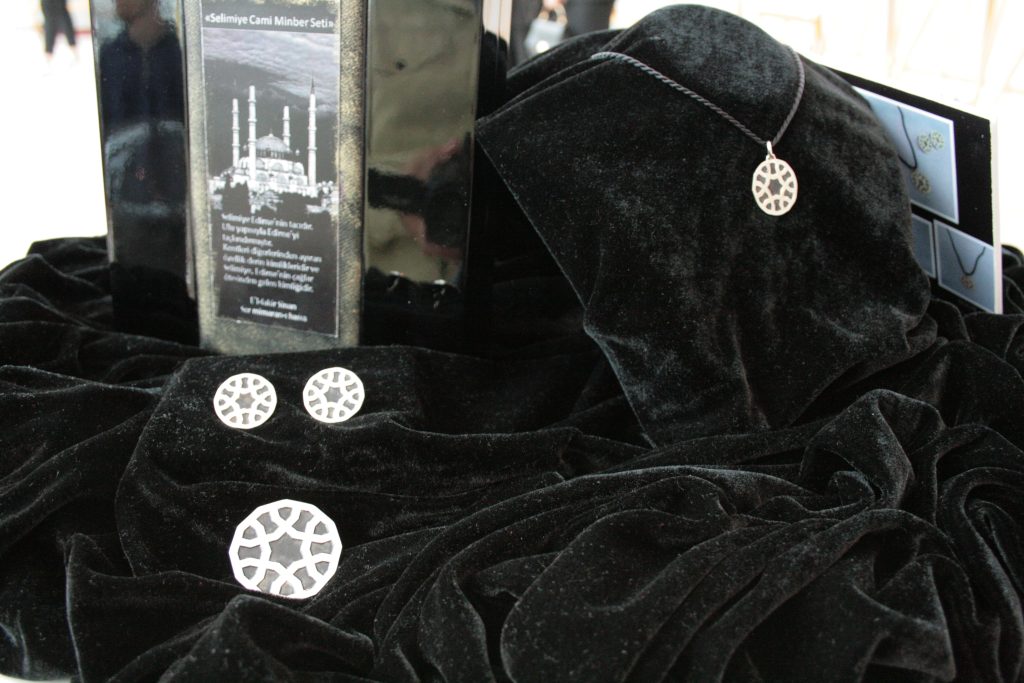 32 katılımcının eserinin bulunduğu sergide Trakya Üniversitesi Şehit Ressam Hasan Rıza Meslek Yüksekokulu Kuyumculuk Takı Tasarımı Program Sorumlusu Öğretim Görevlisi Aybike Kınalı tarafından Selimiye Camii’nin minber motiflerinden esinlenerek yapılan takı seti yoğun ilgi gördü.