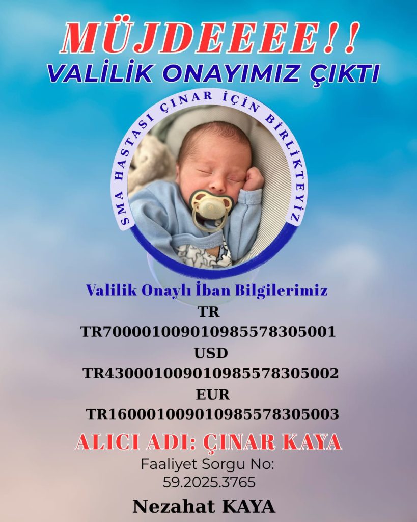 Tekirdağ’ın Çerkezköy ilçesinde yaşayan küçük Çınar Kaya, doğumundan kısa bir süre sonra SMA Tip 1 teşhisi aldı. Ailesi tarafından yapılan açıklamada, Çınar’ın yaşaması, nefes alması ve yaşıtları gibi büyüyebilmesi için Zolgensma gen tedavisine ihtiyacı olduğu belirtildi. Dünyanın en pahalı ilaçlarından biri olan bu ilacı alabilmek için, aile tarafından Tekirdağ Valiliği'nin onayıyla yardım kampanyası başlattı.