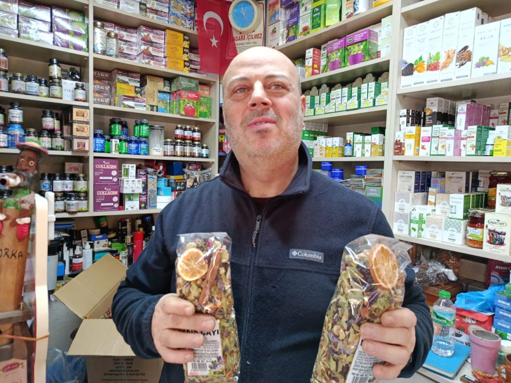 Edirneli aktar Gökhan Baraz, kış aylarının yaklaşmasıyla birlikte vatandaşların doğal bitki çaylarına ilgisinin her geçen gün arttığını belirterek, çayların içeriği hakkında bilgi verdi. Baraz, “İçerisinde ıhlamur, papatya, adaçayı, zencefil, zerdeçal, havlıcan, hibisküs, portakal ve elma kabuğu, mersin yaprağı bulunuyor. Bu bitkilerin hepsini harmanlayarak kışın vazgeçilmez bir içecek elde ediyoruz. Hem boğazları koruyucu hem de gribe, soğuk algınlığına ve nezleye karşı etkili bir karışım. Aynı zamanda vücudun direncini artırarak bağışıklık sistemini güçlendiriyor" dedi.