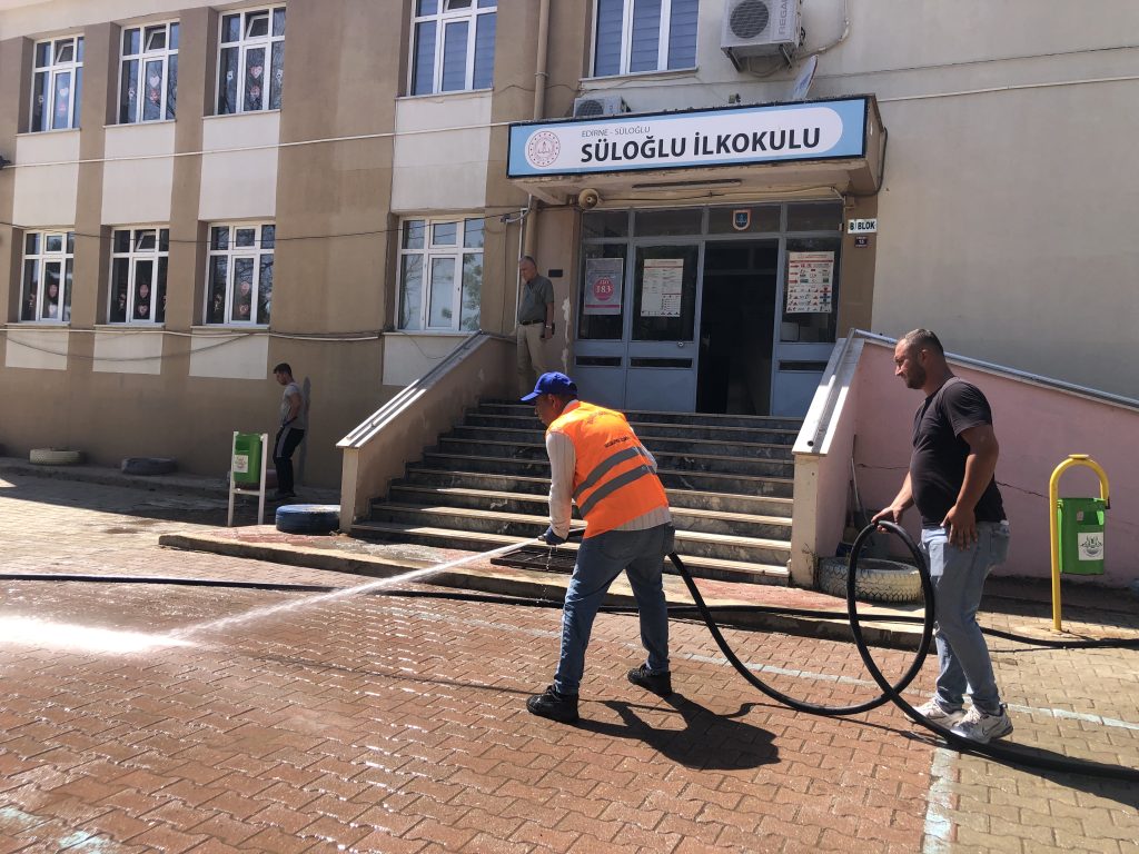 Süloğlu Belediyesi 10 kişilik temizlik ve teknik personeliyle, öğrencilerin eğitimlerini temiz ve sorunsuz bir şekilde sürdürebilmeleri için anaokulu, ilkokul, orta ve lise temizlik çalışmalarını gerçekleştiriyor.