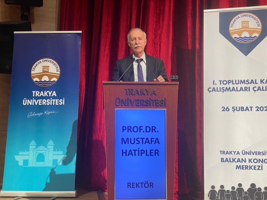 Kartal’ın konuşmasının ardından kürsüye çıkan Trakya Üniversitesi Rektörü Prof. Dr. Mustafa Hatipler; “Bu tür çalıştayları üniversitemize kurumsal kimlik kazandıracak olan bu tür çalıştayları ilk günden bugüne çok sıkı bir şekilde takip eden, anlamlandıran ve bu şekilde hem üniversitemize hem de bu çalışmalara anlam veren, ruh katan ekip arkadaşlarıma teşekkür ediyorum. Katılımlarınızla bu çalıştayı üniversitemizin kurumsal kimliğine ayrı bir güzellik ayrı bir aidiyet katacağına şüphe duymadığımı dile getirmek istiyorum. Bu çalıştay da 2024 yılında yapılanlar ve 2025 yılında yapılacak olanlar ele alınacaktır. Akademik anlamda toplumsal katkının insanların bulunduğu, özellikle üniversitelerin bulunduğu bölgeye hem bilginin paylaşılması hem de o bölgenin sorunlarıyla ilgilenmesi olması o bölgenin sorunlarına çözüm üretmesi ve çok hızlı gelişen, değişen Dünya’nın değişim ve gelişimine ayak uydurmak anlamında olağanüstü bir gayretle çalışması anlamına geldiğini şüphe yok ki biliyorsunuz. Geçtiğimiz günlerde yapay zekayla alakalı bir başka çalıştay, ondan sonra üniversitemizin merkezlenin bir araya geldiği bir çalıştay, yine üniversitemizin öğrenci topluluklarının meselelerini ve sorunlarını konuştuğu çalıştaylar gerçekleştirdik. Bütün bu çalışmalardan hedefimiz üniversitemizin ürettiği bilgiyi, toplumsal meselelere çözüm yollarını dört duvar arasında bırakmaması ve çözüm yollarını bu bilgileri üniversitemizin dışındaki alanlara, özellikle en başta şehrimize sonra ülkemize yaymak istiyoruz” ifadelerine yer verdi.
