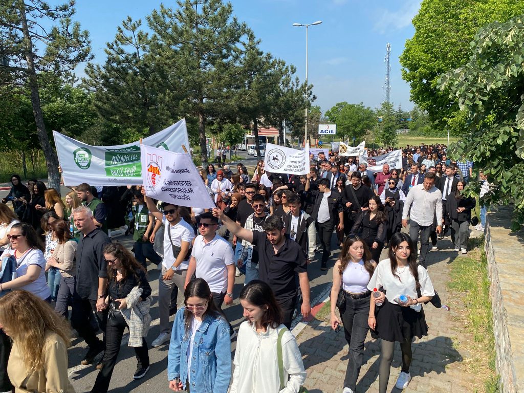 Edirne'de, T.Ü. geleneksel Bahar Şenlikleri, renkli görüntülere sahne olan kortej yürüyüşüyle başladı. Balkan Yerleşkesinde yer alan Bolca Ana Yemekhanesi önünden başlayan yürüyüşe davetliler, üniversite çalışanları, akademisyenler ve öğrenciler katıldı. Coşkulu kortej, Rektörlük binası önünde sona erdi.