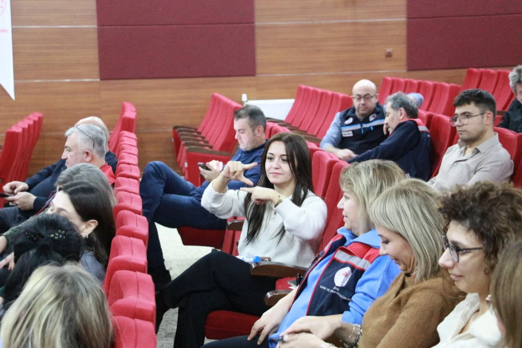 İl Müdürlüğü Konferans Salonu’nda düzenlenen toplantıda, personelin işaret dili konusunda farkındalık kazanması ve toplumun her kesimiyle daha etkin iletişim kurabilmesi amaçlandı. Program kapsamında katılımcılara hem teorik hem de uygulamaya dönük bilgiler aktarıldı.