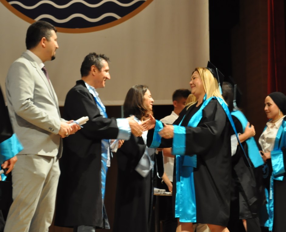 Programın ardından sahneye çıkan öğrenciler mesleki andı da okuyarak mezuniyetlerini ilan ettiler ve keplerini havaya fırlattılar. Mezuniyet törenine katılan veliler de duygu dolu anlar yaşadılar. Damla GÖÇ AKYÜZ