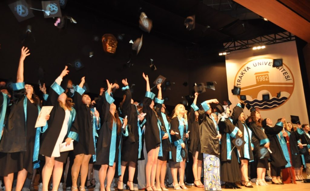 Edirne’de mezuniyet heyecanı yaşanmaya devam ediyor. Mezun olan öğrenciler kervanına Trakya Üniversitesi Teknik Bilimler Meslek Yüksek Okulu’nda önlisans öğrenimlerini tamamlayan öğrenciler de dahil oldular. Balkan Kongre Merkezi’nde düzenlenen mezuniyet töreni, saygı duruşu ve İstiklal Marşı okunması ile başladı. Ardından Trakya Üniversitesi tanıtım filmi ve Trakya Üniversitesi Rektörü Erhan Tabakoğlu’nun konuşması izlendi.