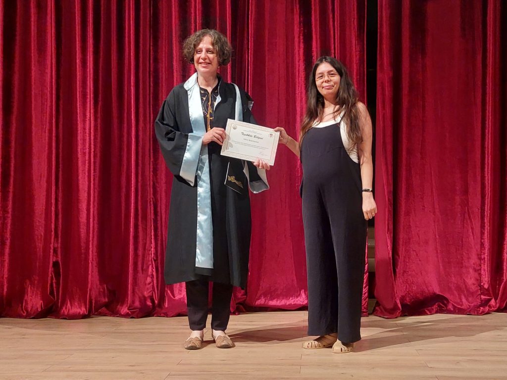 Konuşmaların ardından bölüm birincilerine ödül, Trakya Üniversitesi Edirne Teknik Bilimler MYO Radyo TV Programcılığı ile Radyo TV Teknoloji öğrencilerinin stajlarını yaptıkları kurum temsilcilerini de teşekkür belgesi takdim edildi. Gazetemiz Edirne Ahval Sorumlu Yazı İşleri Müdürü Damla Göç Akyüz’e belgesi kendisinin de öğretmeni olan Trakya Üniversitesi Teknik Bilimler MYO Dr. Öğr. Üyesi Ridade Öztürk tarafından takdim etti.