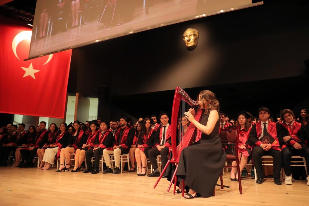 Tören, Tıp Fakültesi mezunlarından Dr. Eylül Şenödeyici’nin sunduğu müzik dinletisiyle başladı.