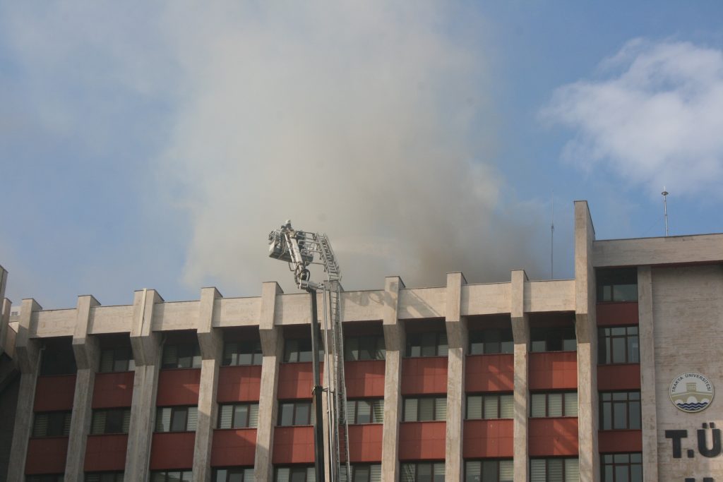 Trakya Üniversitesi Tıp Fakültesi Hastanesi'nin çatısında, bugün saat 17.00 sıralarında henüz belirlenemeyen bir neden dolayı çıkan yangın paniğe neden oldu. Olay yerine çok sayıda itfaiye ekibi sevk edilirken, yangın sebebiyle 9'uncu katta bulunan bebek bakım ünitesi, yoğun bakım ünitesindeki hastalar aşağı katlara indirildi. Durumu acil olan bazı hastalar da Edirne 1'inci Murat Devlet Hastanesi'ne sevk edildi. Hastanede yatan çoğu hasta da tahliye edildi.
