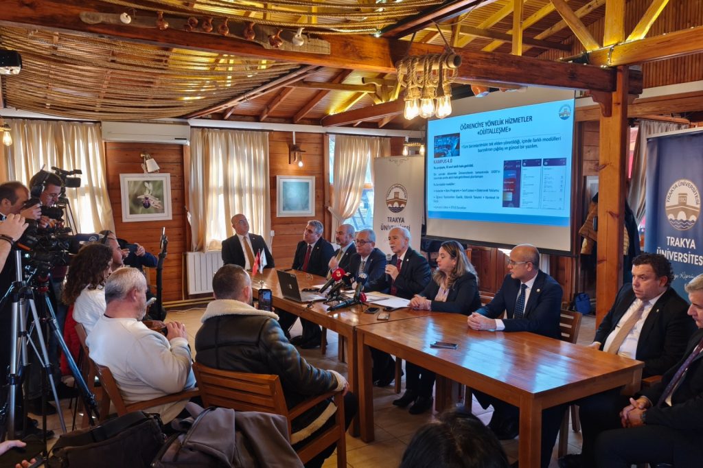 Ağustos ayında yayımlanan Cumhurbaşkanı kararıyla Trakya Üniversitesi Rektörlüğü görevine atanan Rektör Prof. Dr. Mustafa Hatipler, göreve gelişinin ardından geçen 3 aylık süreç içerisinde yaptıkları çalışmaları değerlendirdi. Üniversitenin Meriç Nehri kenarında bulunan Meriç Sosyal Tesisi’nde basın toplantısı düzenleyen Rektör Hatipler’e Rektör Yardımcıları Prof. Dr. Ahmet Muzaffer Demir ve Prof. Dr. Eylem Bayır, Tıp Fakültesi Dekanı Prof. Dr. Sedat Üstündağ, Trakya Üniversitesi Genel Sekreteri İlyas İpek ile Sağlık Kültür ve Spor Daire Başkanı Ahmet Yence eşlik etti