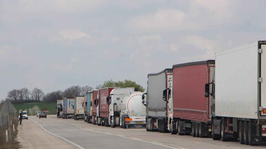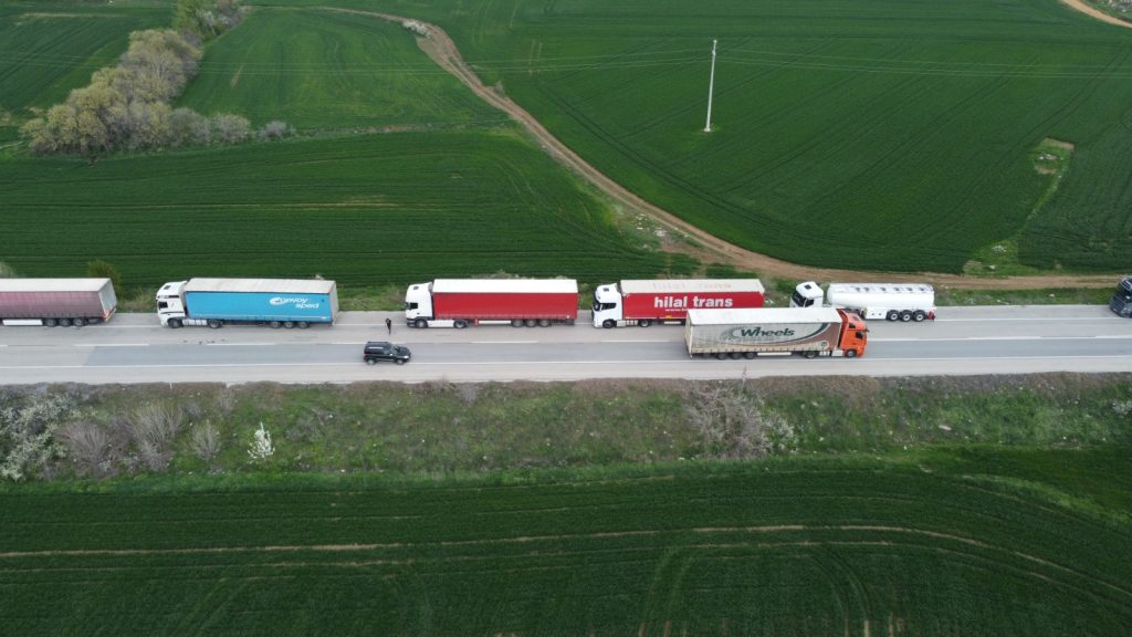 Edirne’den Avrupa’ya açılan sınır kapılarından Hamzabeyli Sınır Kapısı’nda Ramazan Bayramı’nın birinci günü 13 kilometrelik TIR kuyruğu oluştu.