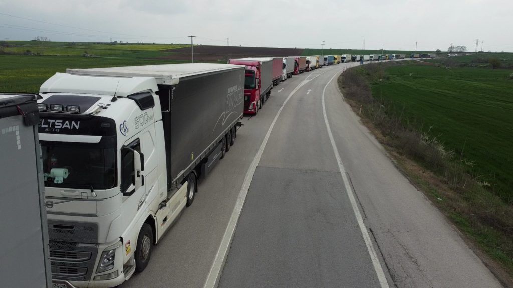 Türkiye’den yükledikleri ürünleri Avrupa’nın çeşitli ülkelerine götürmek üzere yola çıkan TIR sürücüleri, Hamzabeyli Sınır Kapısı’nda oluşan 13 kilometrelik TIR kuyruğunda, bu bayramı da ailelerinden uzak bir şekilde geçiriyor.
