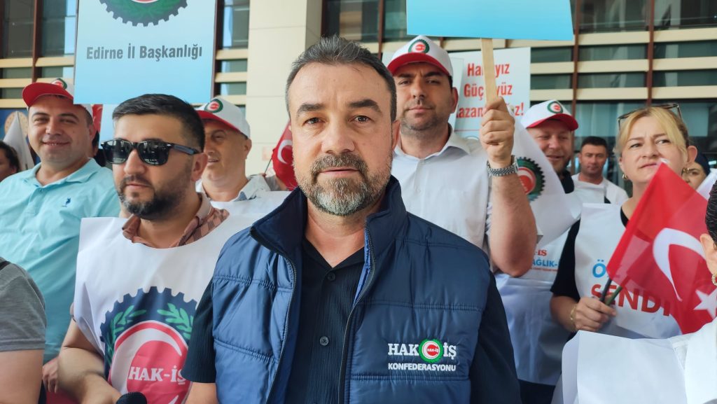 HAK-İŞ’e bağlı Öz Sağlık-İş Edirne Şubesi, kamu işçileri için süren toplu sözleşme görüşmelerine ilişkin Sultan 1’inci Murat Devlet Hastanesi önünde basın açıklaması yaptı. Burada konuşan HAK-İŞ Edirne İl Başkanı ve Öz Sağlık-İş Sendikası Edirne Şube Başkanı Emre Promet, sunulan zam teklifinin yetersiz olduğu belirterek; “Ülkemizin sorunlarına yenilerini eklemek, yeni kaos ve krizlerin yaşanmasını asla istemiyoruz. Ama unutulmasın ki kamu çerçeve protokolündeki taleplerimiz ve beklentilerimiz karşılanmazsa, demokratik haklarımızı kullanmaktan da geri durmayacağımızı ifade ediyoruz” dedi.