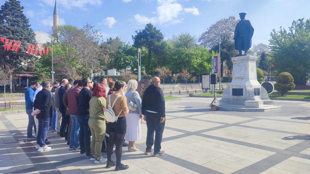 Her yıl Nisan ayının sın cumartesi günü kutlanan ‘Dünya Veteriner Hekimler Günü’ kapsamında, Trakya Bölge Veteriner Hekimler Odası tarafından, Edirne’nin Atatürk Anıtı’nda çelenk sunma töreni düzenlendi. Oda temsilcileri tarafından anıta çelenk sunulmasıyla başlayan tören, saygı duruşunda bulunulması ve İstiklal Marşı’nın okunmasıyla devam etti. Törende, Trakya Bölge Veteriner Hekimler Odası Genel Sekreteri Buse Özyıldırım, günün anlam ve önemine yönelik bir konuşma gerçekleştirdi. Özyıldırım, Dünya Veteriner Hekimler Günü’nün bu yıl ‘Hayvan Sağlığı Bir Takım Gerektirir’ temasında kutlandığını dile getirdi.