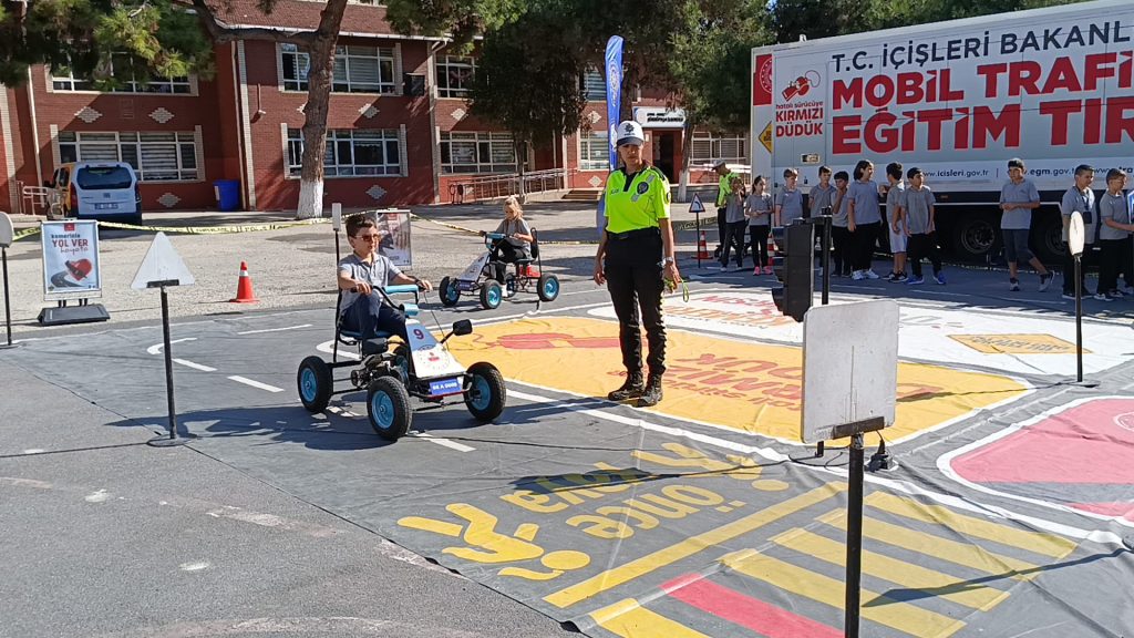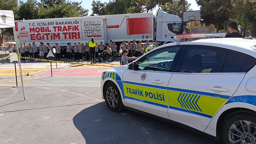 Emniyet Genel Müdürlüğü tarafından tasarlanan ve özel donanımlarla hazırlanan tırda; simülasyon cihazları, görsel materyaller ve uygulamalı eğitim alanları yer alıyor. Eğitmen polisler eşliğinde trafik kurallarını oyunlarla öğrenen öğrencilere, özellikle yaya geçidi, trafik ışıkları ve emniyet kemeri kullanımı konusunda bilinç kazandırılması hedeflendi.