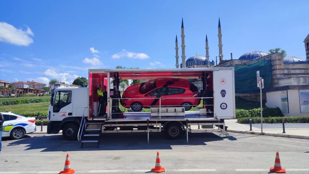 Edirne'de, Emniyet Genel Müdürlüğü Trafik Başkanlığı’nca gönderilen emniyet kemeri simülasyon aracı, kentin Selimiye Camisi meydanına kurularak, vatandaşlara bir trafik kazasında emniyet kemerinin hayati rolünü deneyim ettirdi. Etkinlikte, katılımcılar, emniyet kemeri takarak ya da takmadan gerçekleşen bir kazada yaşanabilecekleri güvenli bir ortamda tecrübe etti.