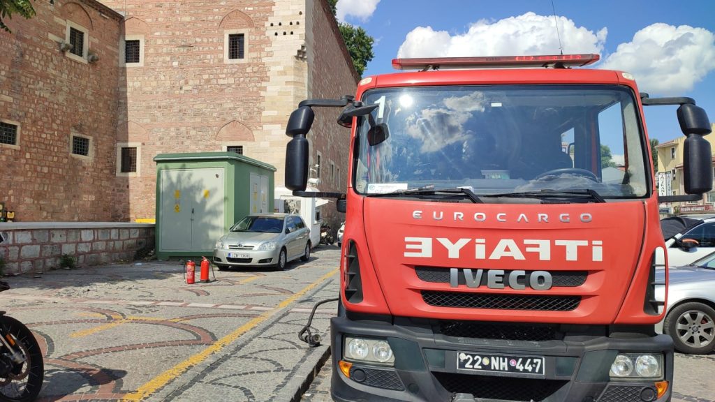 Edirne'de Sabuni Mahallesi'nde bulunan Tarihi Rüstem Paşa Kervansarayı'nın arkasında bulunan trafoda yangın çıktı. Çevredeki vatandaşların yangını ihbar etmesi üzerine bölgeye itfaiye, Trakya Elektrik Dağıtım A.Ş. (TREDAŞ) ve polis ekipleri sevk edildi.