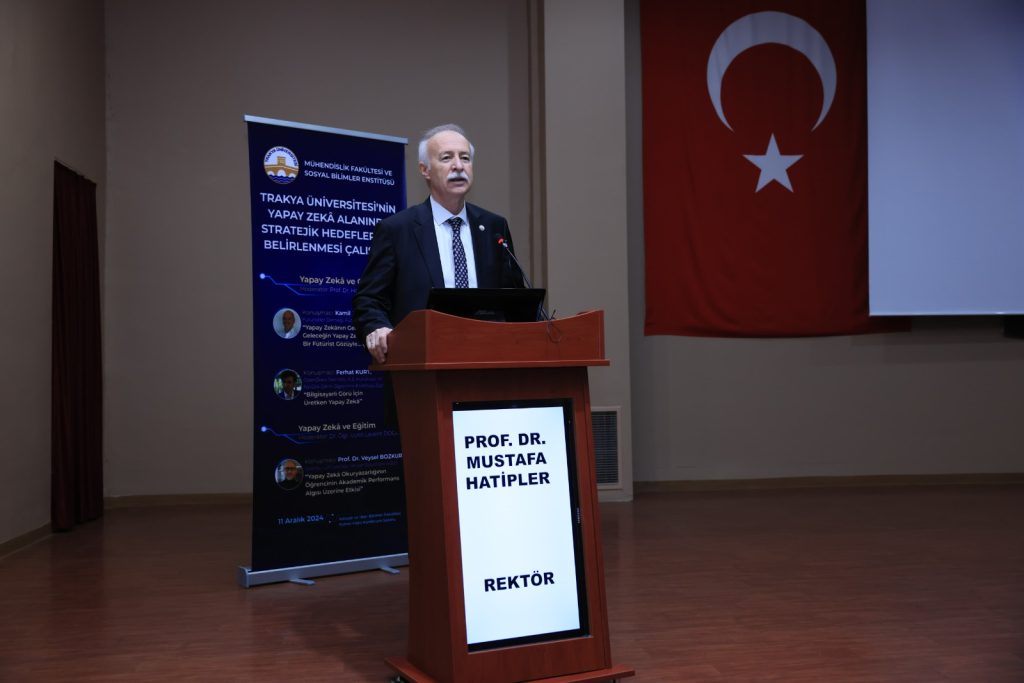 Rektör Prof. Dr. Mustafa Hatipler ise yapay zekânın hızlı bir şekilde geliştiğini ve kişiselleştirilmiş sağlık, eğitim programları, iklim değişikliğiyle mücadele ve enerji verimliliği gibi karmaşık konularda önemli bir rol üstlenmesinin beklendiğini söyledi. Hatipler, insanı merkeze alarak etik değerler doğrultusunda bu teknolojiden en iyi şekilde yararlanmak ve ortaya çıkabilecek riskleri minimize etmek için dikkatli ve bilinçli adımlar atılması gerektiğini vurguladı. Hatipler, Üniversitenin stratejik hedeflerini belirlemek için bu çalıştayın önemli olduğunu ifade etti.