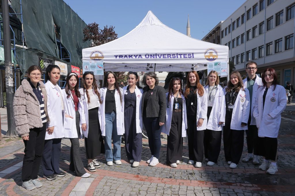 Trakya Üniversitesi Sağlık Bilimleri Fakültesi Hemşirelik Bölümü İç Hastalıkları Hemşireliği Ana Bilim Dalı öğrencileri ve akademisyenleri tarafından, 1-7 Nisan Kanser Haftası kapsamında Saraçlar Caddesi'nde farkındalık etkinliği düzenledi. Erken tanı ve tarama programlarının öneminin anlatıldığı etkinlikte, vatandaşlara sağlık kontrolü yapılarak, zararlı alışkanlıkların kanserle mücadeledeki yeri vurgulandı.