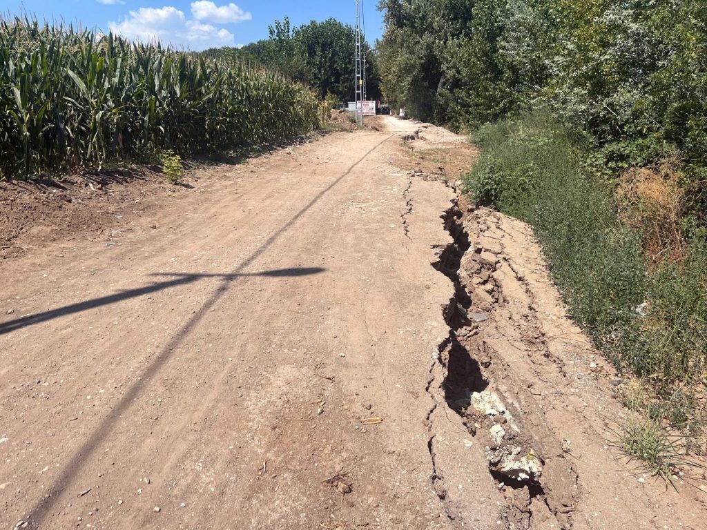 Edirne'de aşırı sıcaklık kaynaklanan kuraklık sebebiyle kuruma noktasına gelen Tunca Nehri'nin yanından geçen toprak yolda göçükler oluşmaya başladı. Yolun bazı bölümlerinde 2 metrelik boya ulaşan göçükleri görenleri şaşırtıyor. Yol, çökme riskinden dolayı trafiğe kapatıldı.
