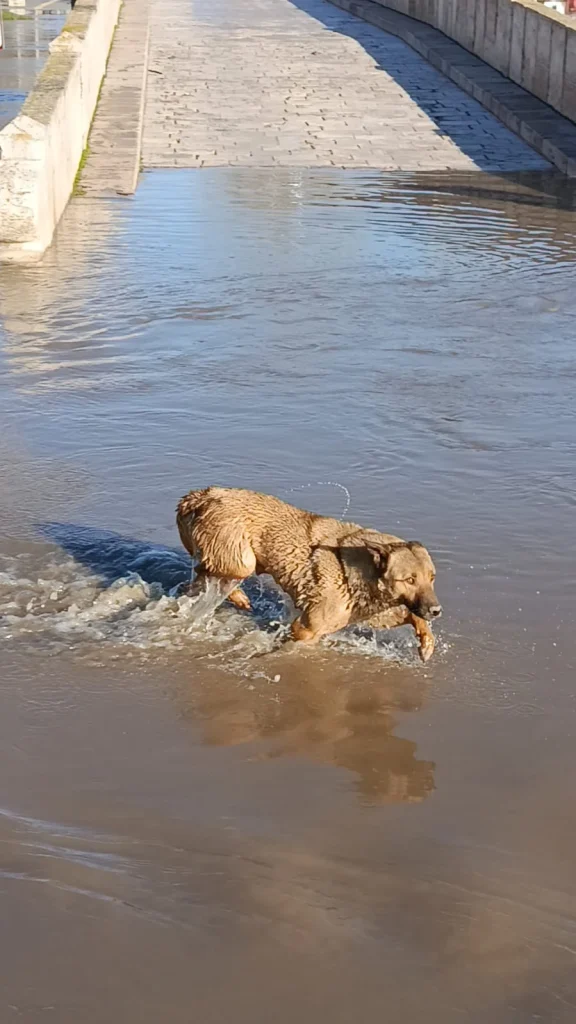 Dün Edirne Belediye tarafından mahsur kalan sokak hayvanların bir kısmı kurtarılırken, bazıları yakalanmayınca geceyi sular altında geçiren sahipsiz sokak hayvanları, bu sabah sular altında kalan köprüden yüzerek kendi imkanları ile çıktı.