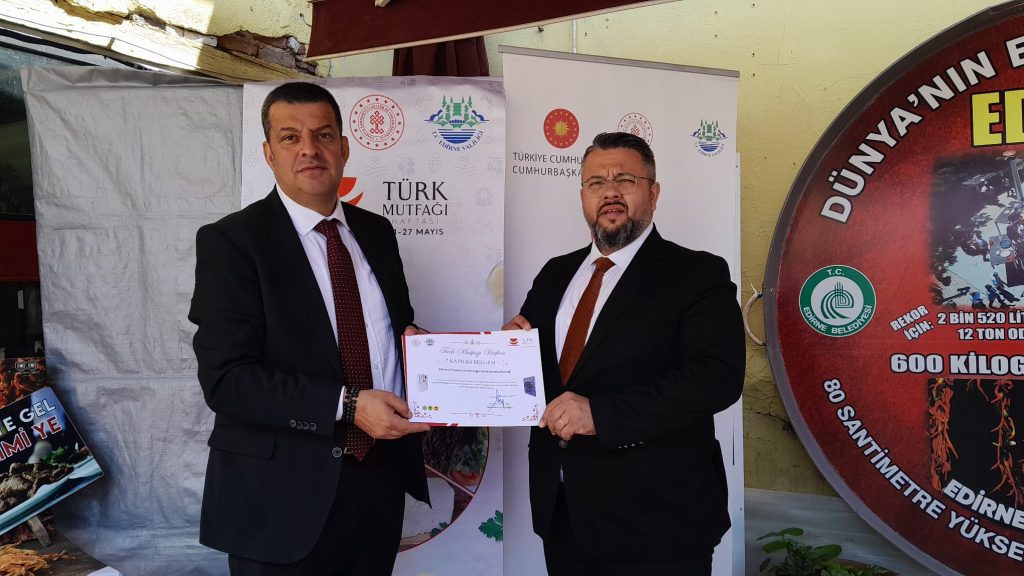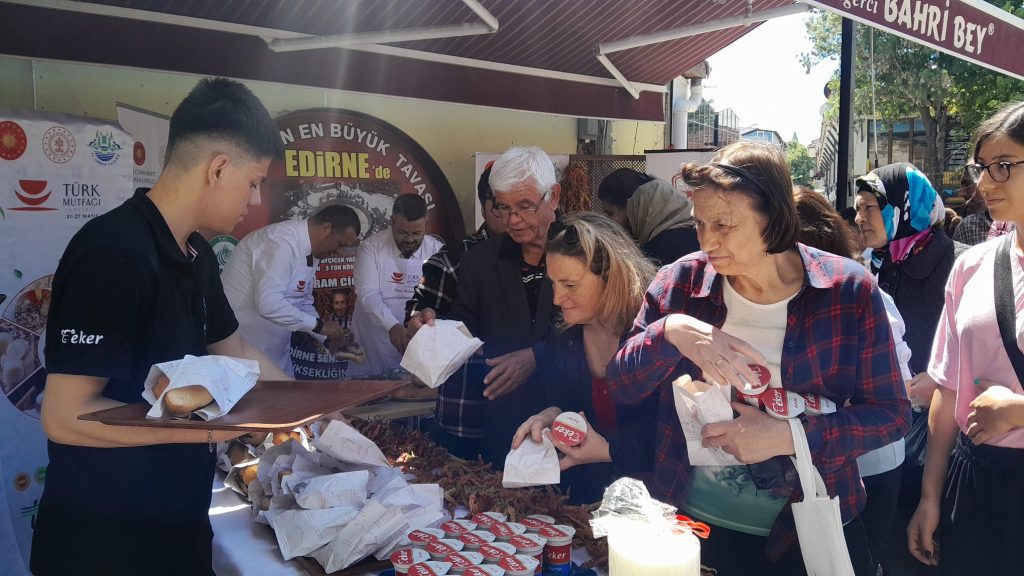 Pişirilen Edirne Ciğeri ekmek arası yapılarak vatandaşlara dağıtıldı. Ayrıca Edirne Tanıtma ve Tava Ciğer Kalite Koruma Derneği başkanı Uğurcan Imrak’a Edirne İl Kültür Turizm Müdürü Kemal Soytürk tarafından katılım belgesi takdim edildi. Imrak belgeyi, rahmetli Bahri Dinar ve babası Ciğerci Kemal Usta adına aldığını aldığını vurguladı. Damla GÖÇ AKYÜZ
