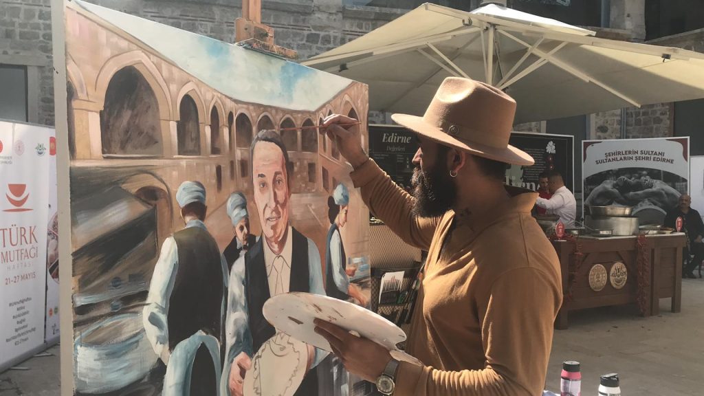 Edirne’yi Tanıtma ve Tava Ciğeri Kalite Koruma Derneği Başkanı, Edirne’nin Turizm Elçisi, Tarihi Ciğerci Bahri Dinar’ın geçtiğimiz aylarda yaşamını yitirmesi tüm Edirne’yi yasa boğmuştu. Türk Mutfağı Haftası etkinlikleri kapsamında Edirne’nin ağabeyi Bahri Dinar’ın adını yaşatmak için ressam Hatai Apdullayev tarafından Dinar’ın portresi yapıldı. Çizimi biten portre, Bahri Dinar’ın eşi Hediye Dinar’a takdim edildi. Ciğerci Bahri Bey’e ithafen yapılan tava ciğer marşı ise 9-8’lik ritmine rağmen gelenleri hüzünlendirdi.
