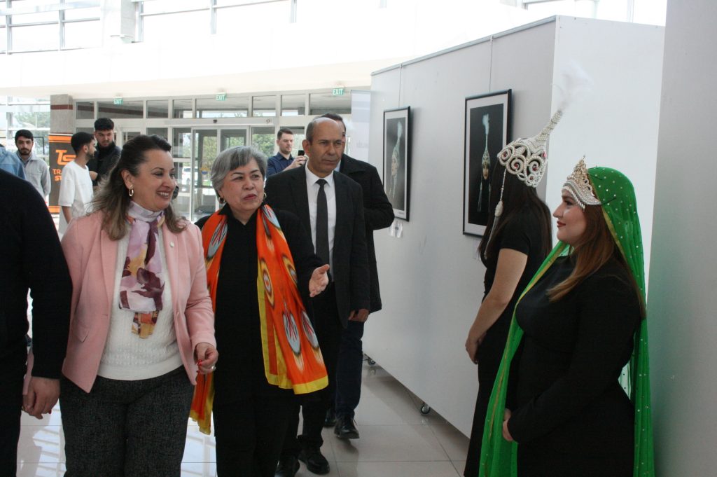 Edebiyat Fakültesi Tarih Bölümü Genel Türk Tarihi Anabilim Dalı Başkanı Prof. Dr. Tilla Deniz Baykuzu, sergideki objelerle ilgili bilgi vererek, milattan önce 4000 yılından başlayıp günümüze dek gelen süreçteki başlıkların sergide yer aldığını kaydetti. Prof. Dr. Baykuzu; “Geçen sene birincisini yaptığımız Türk Dünyası Kadın Başlıkları sergimizin ikincisini yapıyoruz. Bir seneden beri çalışmaktayız. Daha çok tarihi başlıklara ağırlık verdik. Mezarlardan çıkarılan arkeolojik verileri inceleyerek milattan önce 4000’inci yıllardan başladık. Günümüze kadar birer tane temsili başlık yaptık. Şimdilik 4 tane geleneksel çağdaş başlık bulunmaktadır. Kazakistan’dan, Özbekistan’dan ve Saha Cumhuriyeti’nden bulunmaktadır. Geri kalan 20 tanesi ise İskitler, Hunlar, Tabgaçlar, Göktürkler ve Uygurlardan oluşmaktadır. Toplam 25 tane başlığımız var. 2 tane mumyamız var. Ölü maskelerimiz var. Mumya başlıklarımız var. Her şeyi olduğu gibi kendimiz yaptık” diye konuştu.
