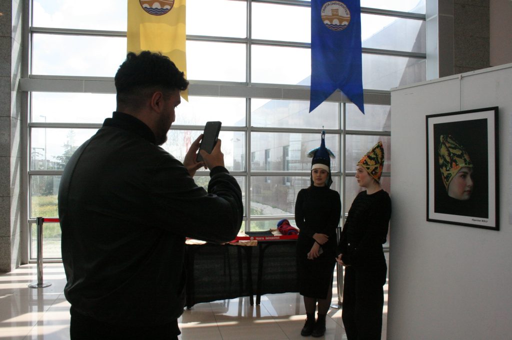 Trakya Üniversitesi Eski Türk Tarihi ve Kültürü Topluluğu üyesi öğrenciler, Edebiyat Fakültesi Tarih Bölümü Genel Türk Tarihi Anabilim Dalı Başkanı Prof. Dr. Tilla Deniz Baykuzu danışmanlığında, tarihi belge ve arkeolojik bulgularda elde edilen eski Türk uygarlıklarında kullanılan geleneksel başlıkları yeniden üreterek, yine Tarih bölümü öğrencisi canlı mankenler ile sergiledi. Ayrıca Tarih Bölümü Öğrencisi ve fotoğraf sanatçısı Alparslan Bolu’nun, sergideki canlı mankenleri fotoğrafladığı çalışmaları da sergide yer aldı.