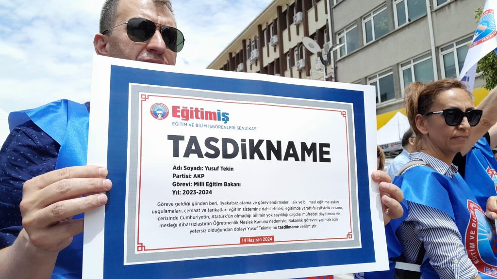Katılımcılar ellerinde Milli Eğitim Bakanı Yusuf Tekin’e hazırladıkları tasdikname belgesi taşıdılar. Damla GÖÇ AKYÜZ