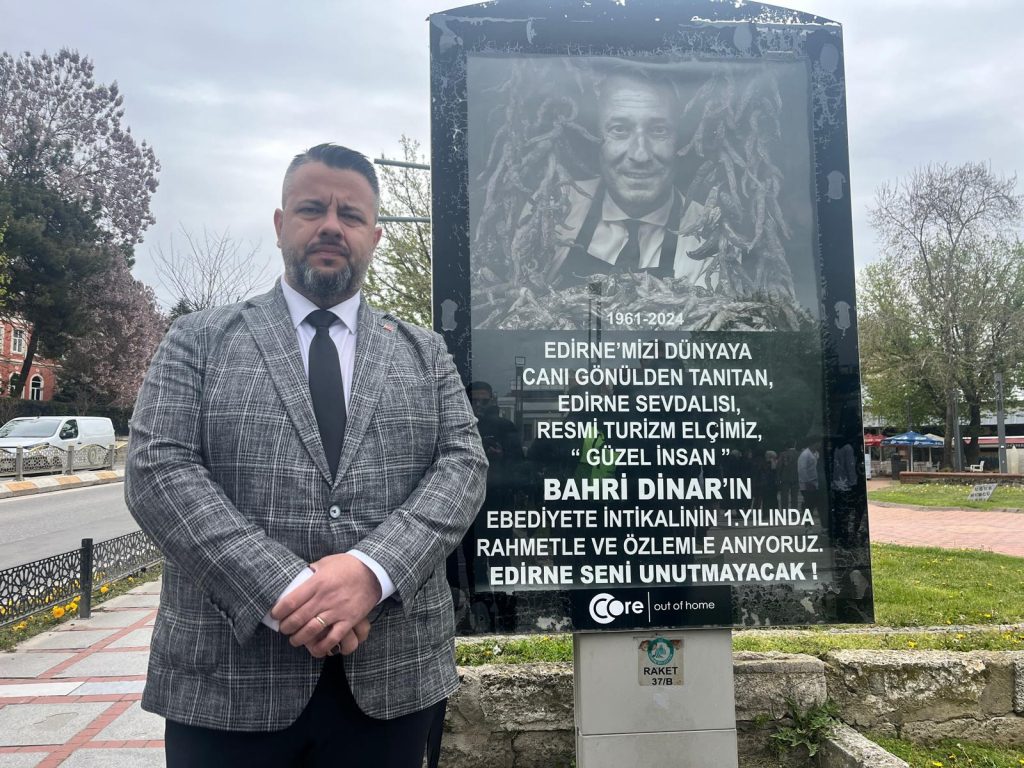 Edirne’de geçtiğimiz yılın 19 Nisan tarihinde turizm haftası kutlanırken hayata gözlerini yuman, Edirne’nin tek resmi turizm elçisi Bahri Dinar, kurucu başkanı olduğu Edirne’yi Tanıtma ve Tava Ciğer Kalite Koruma Derneği tarafından unutulmadı. Dernek yönetimi tarafında kentteki billboardlara reklam verilirken, Dernek Başkanı Uğurcan İmrak; “Bahri abimizi unutmayacağımızı söylememiz gerekiyor, hiçbir zaman unutmayacağız, unutturmayacağız” dedi.