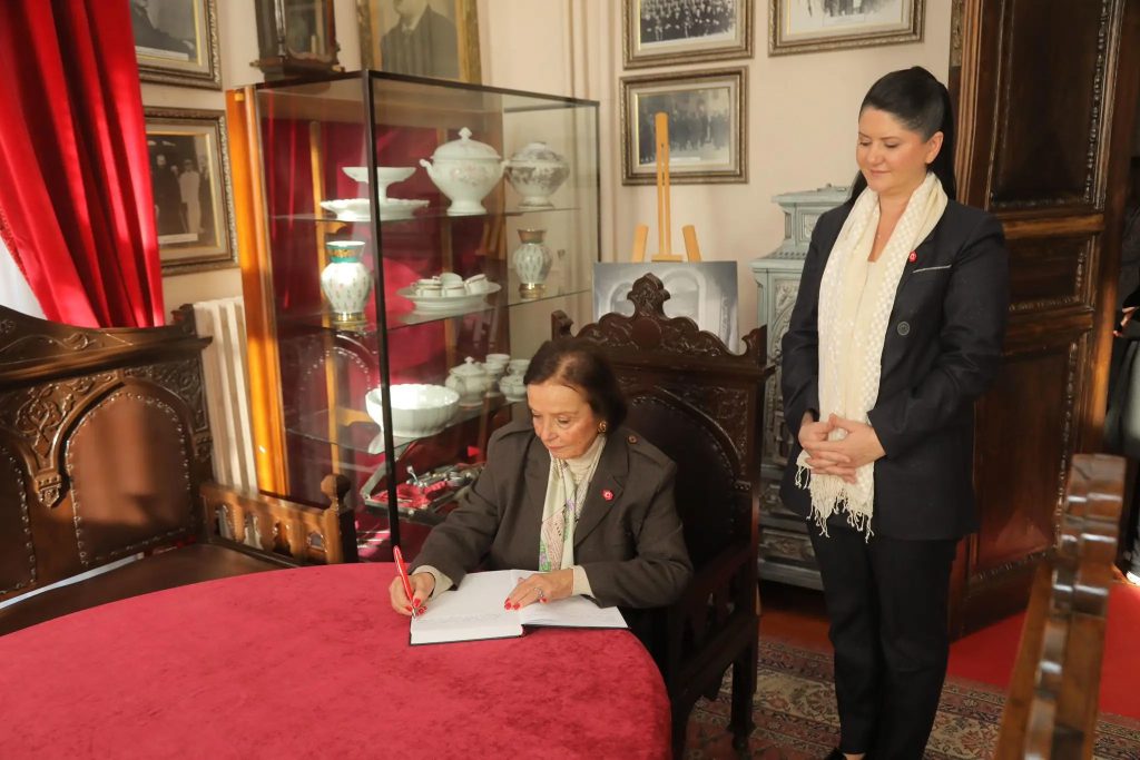 Etkinlik öncesinde Başkan Filiz Gencan, Lale Aytaman’ı belediyenin tarihi binasında ağırladı. Atatürk Odası’nı ziyaret eden Aytaman, anı defterini imzaladı. Ziyaretin sonunda Lale Aytaman, Muğla Valiliği döneminde emekçi kadınlar tarafından kurulan MELSA bünyesinde üretilen Türk Bayrağı rozetini Başkan Gencan’a hediye etti.
