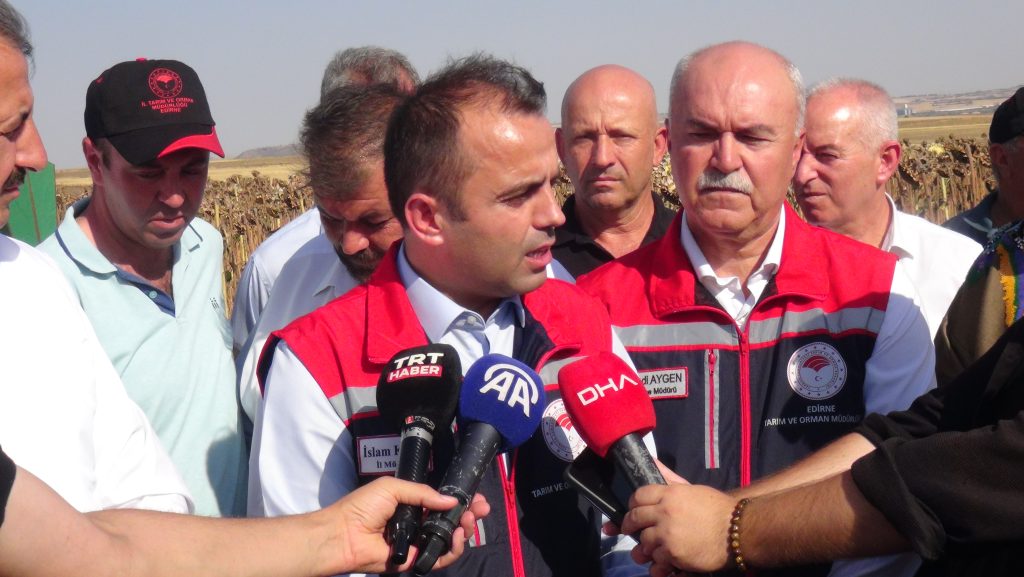 Edirne Valisi Yunus Sezer ise, Türkiye’nin ayçiçeği ihtiyacının yaklaşık yüzde 10’unun Edirne’de üretildiğini kaydederek; “İlkbahar’da buradaydık, bir ekim yaptık. Farklı zamanlarda, farklı yöntemlerle özellikle kuraklık nedeniyle daha fazla verimi nasıl alabiliriz arayışı var. Anıza ekim yapıldı, bu ekimde şu andaki tahmini hasat beklentilerine göre yüzde 30 oranında bir artış var ama bu teyit edilmemiş. Daha sonra da bunun birkaç yıl denemesi yapılarak ancak çiftçilere önerebilir hale geleceğiz. Bu manada da Edirne’miz tarım memleketi. Çeltiğin yüzde 50’sine yakınını Edirne üretiyor. Ayçiçeği üretiminde de 1 milyon 300 bin dekar alanda üretim yapıyoruz ve yaklaşık ülkemizin yüzde 10 üretim ihtiyacını da Edirne karşılıyor. Bu çok büyük bir rakam. Geçen seneki rakamlarımız da yaklaşık 130 kilogram bir ortalama verim elde ettik. Bu sene bunu arttırabilir miyiz? Hasat yeni yapılıyor ama bu sene kuraklık daha fazlaydı. Sulanabilir alanlarda 400 kilograma kadar ayçiçeğinden verim elde ediyoruz. Kurak alanlarda da bazı bölgelerde bu 80 kilograma kadar düşmüş durumda. Yine ortalama olarak 100-130 kilogram zannediyorum bir verim elde edeceğiz” diye konuştu.