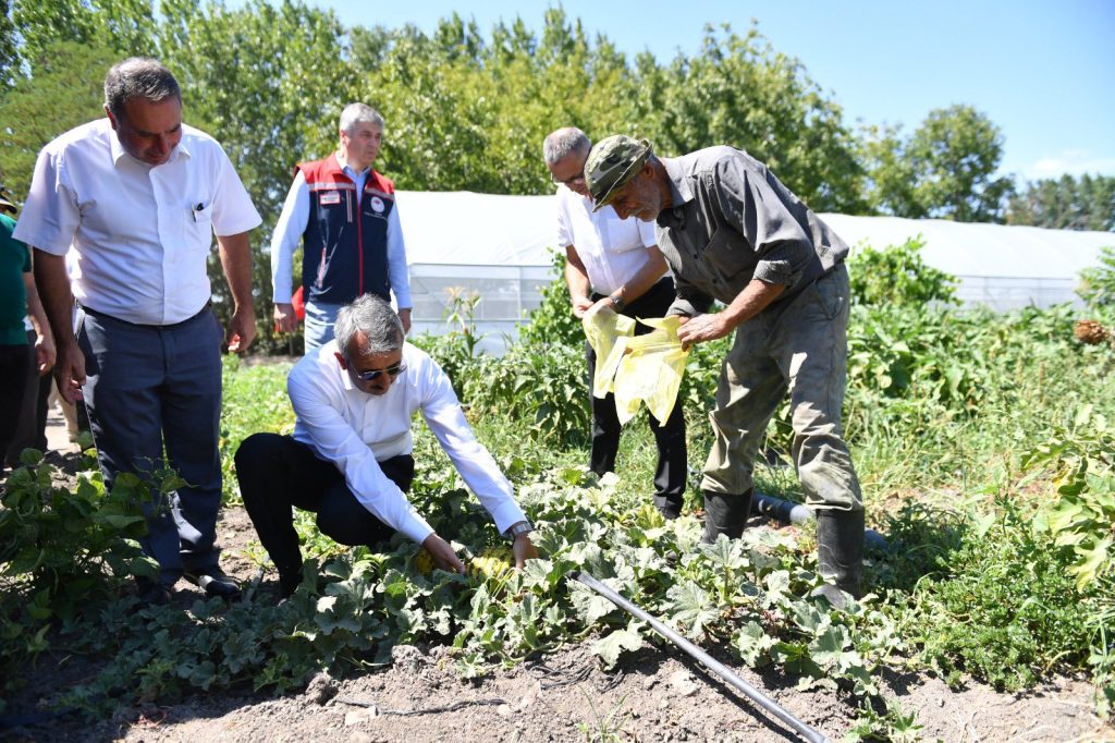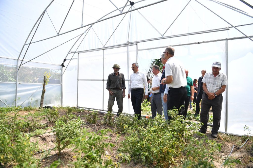 Edirne Valisi Yunus Sezer, Edirne merkeze bağlı Sazlıdere Köyü’nde kurulumu tamamlanan seralarda incelemelerde bulundu.