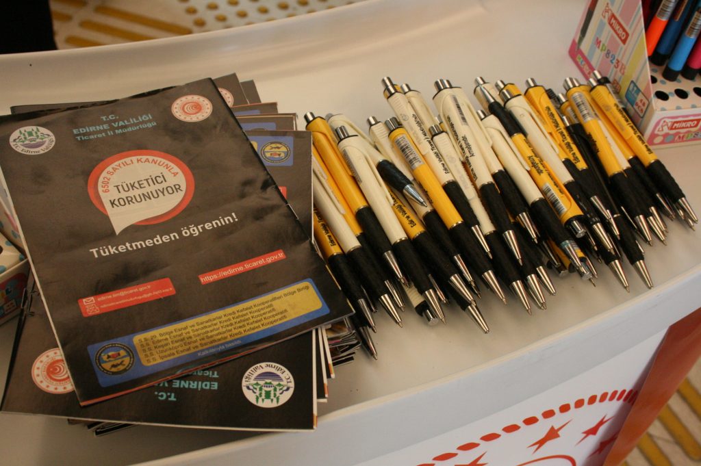 Edirne’de de 28 Kasım 2013 tarihli ve 28835 sayılı Resmi Gazetede yayımlanarak değiştiren 6502 sayılı Tüketicinin Korunması Hakkında Kanun kapsamda Ticaret İl Müdürlüğü ekiplerince, kentteki Erasta AVM’de stant açılarak, vatandaşlara broşür dağıtılıp temel gereksinimlerin giderilmesi hakkı, güvenlik ve güven duyma hakkı, mal ve hizmetlerin serbestçe seçilmesi gibi konularda tüketici hakları hakkında bilgi verildi.